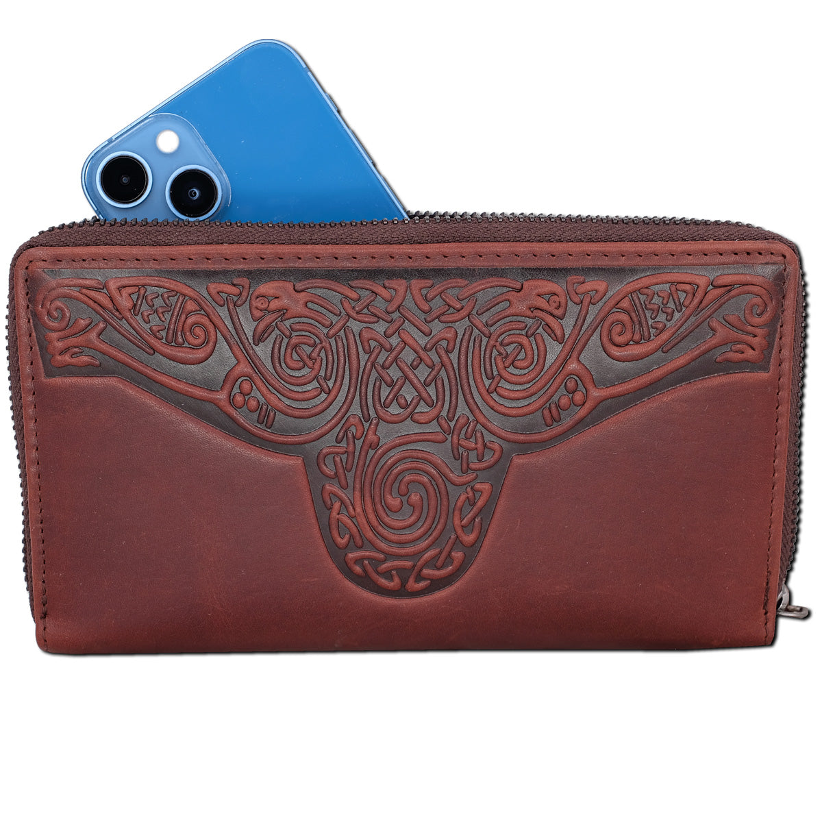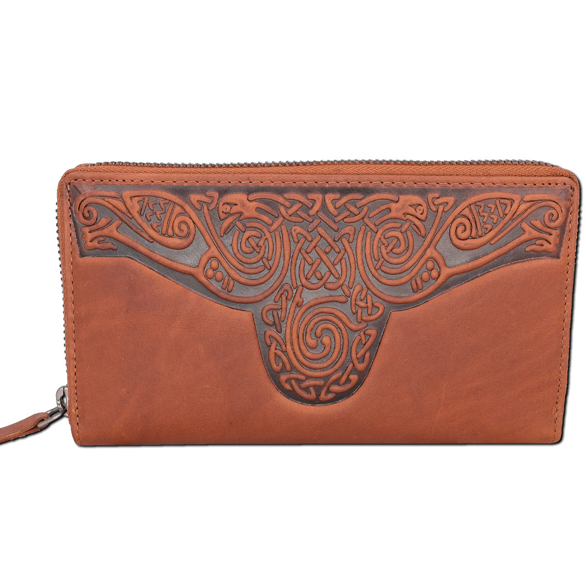 Celebrate Irish heritage with this full-size ladies’ leather wallet from Ireland. Made from premium full-grain leather. Featuring intricate Celtic embossing from the Book of Kells, the design showcases two swans, a powerful Celtic symbol of love, grace, and transformation.