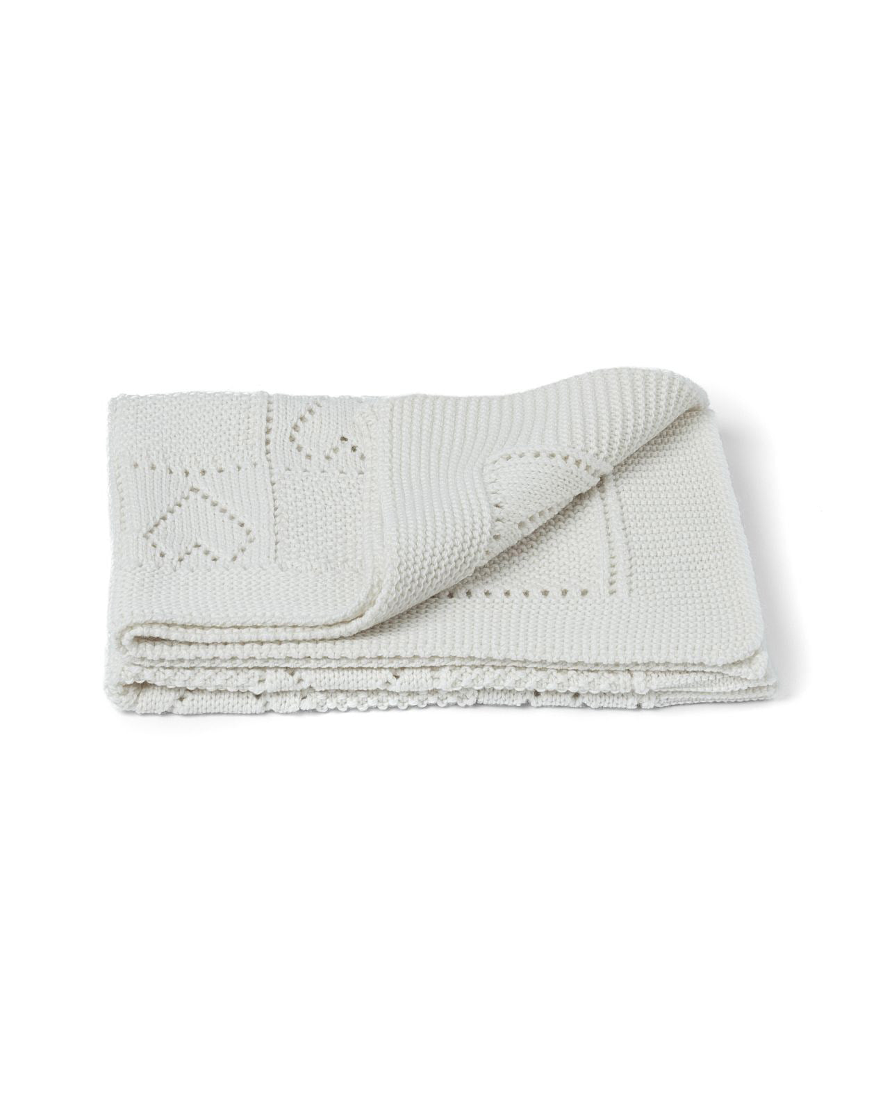 This Aran Knit Baby blanket features a pretty lace heart design, finished with moss stitch edging, this sweet baby blanket is knitted in luxurious Supersoft Merino yarn. Ideal for little ones all year round, this breathable, snuggly baby blanket would make a thoughtful gift and is a perfect hospital blanket for all newborns. Perfect for baby first stroller outing.  Dimensions: 36in x 24in (91 x 61cm) 100% Supersoft Merino Wool. Designed and made in Ireland.