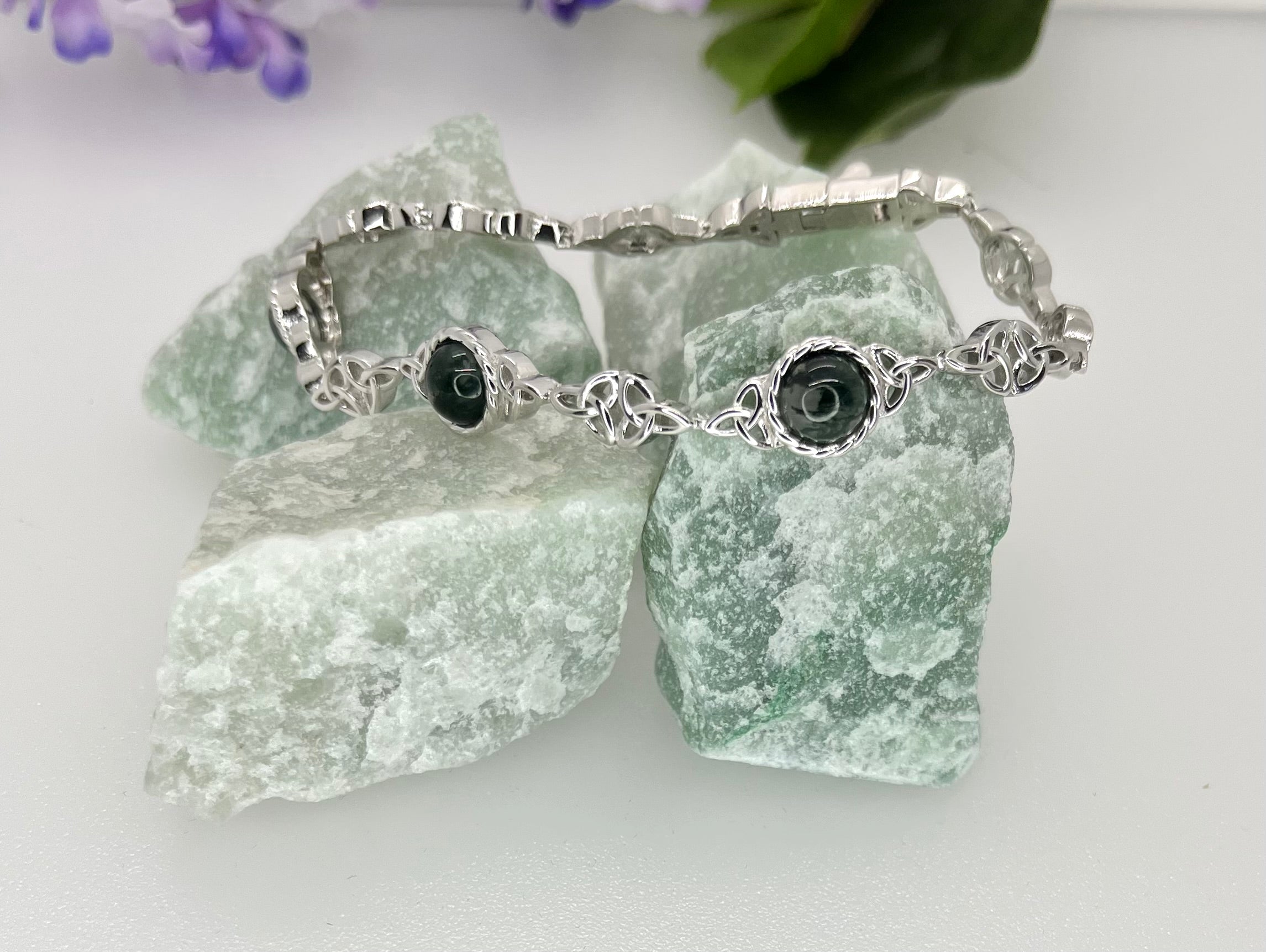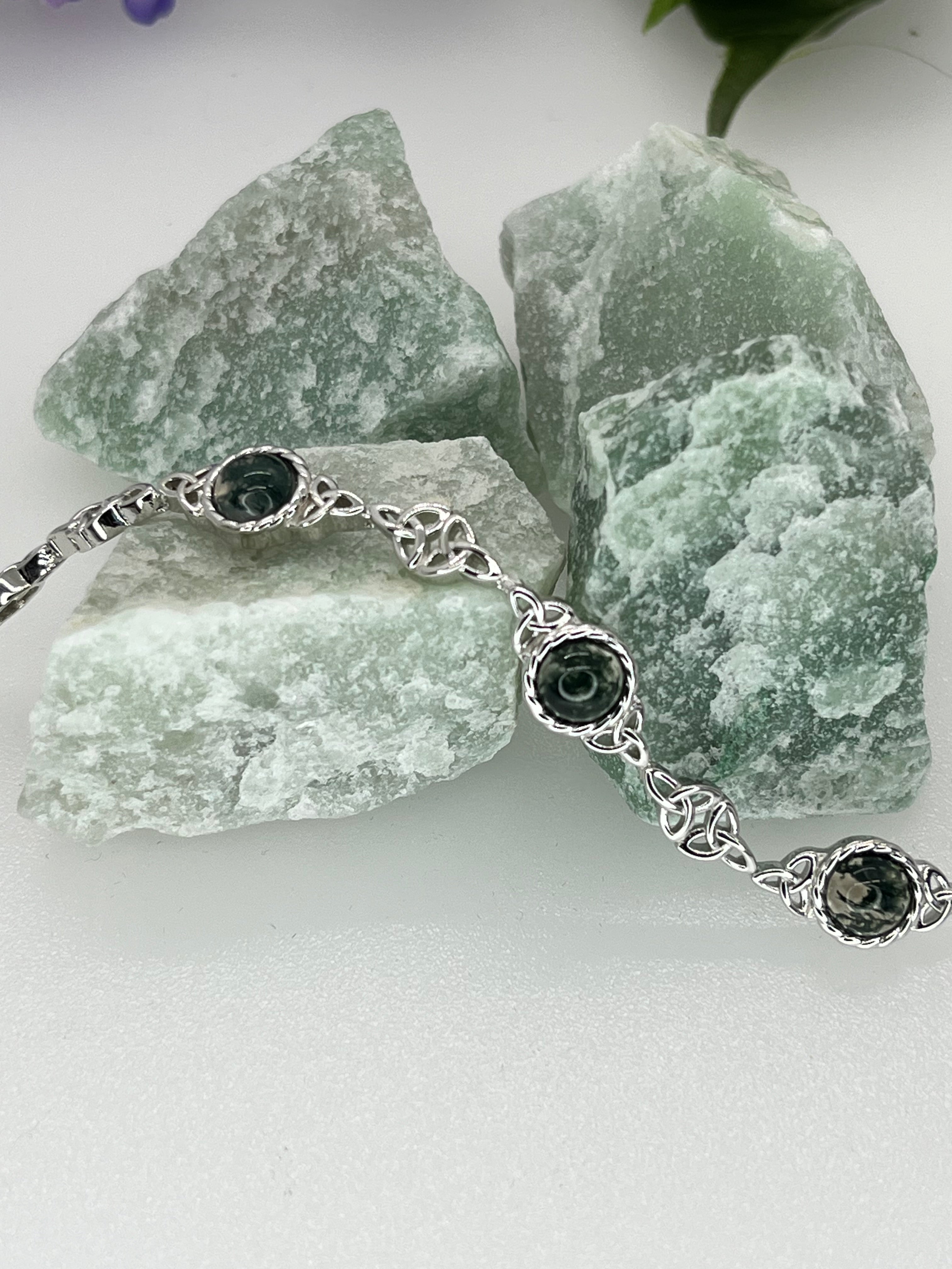 Bracelets are a beautiful touch at the wrist. We offer casual styles in cotton, braided cords, leather and Connemara marble. Also in sterling silver with stones for an elevated look.