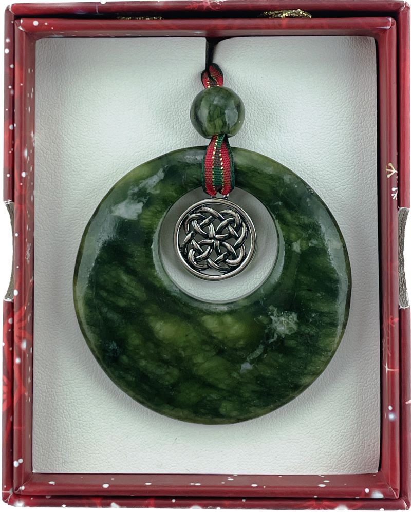 Round Connemara Marble Ornament with Celtic Knot Charm