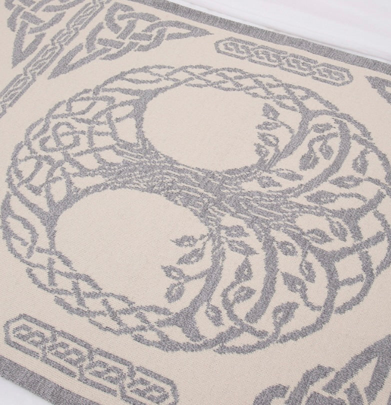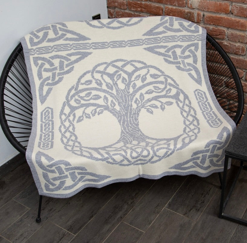 The design was created around the Irish motif of the tree of life. It depicts a “tree of life” pattern, with Celtic knots detailing on the margins. Our design tells a story, one of the Celtic traditions, according to which, the tree of life is a symbol for growth and fulfillment in each and every stage of life. Celtic knots represent the Holy trinity. This design provides versatility - it will go with any decor. The throw is ideal for draping over your bed, sofa, or any chair. Made in Ireland.