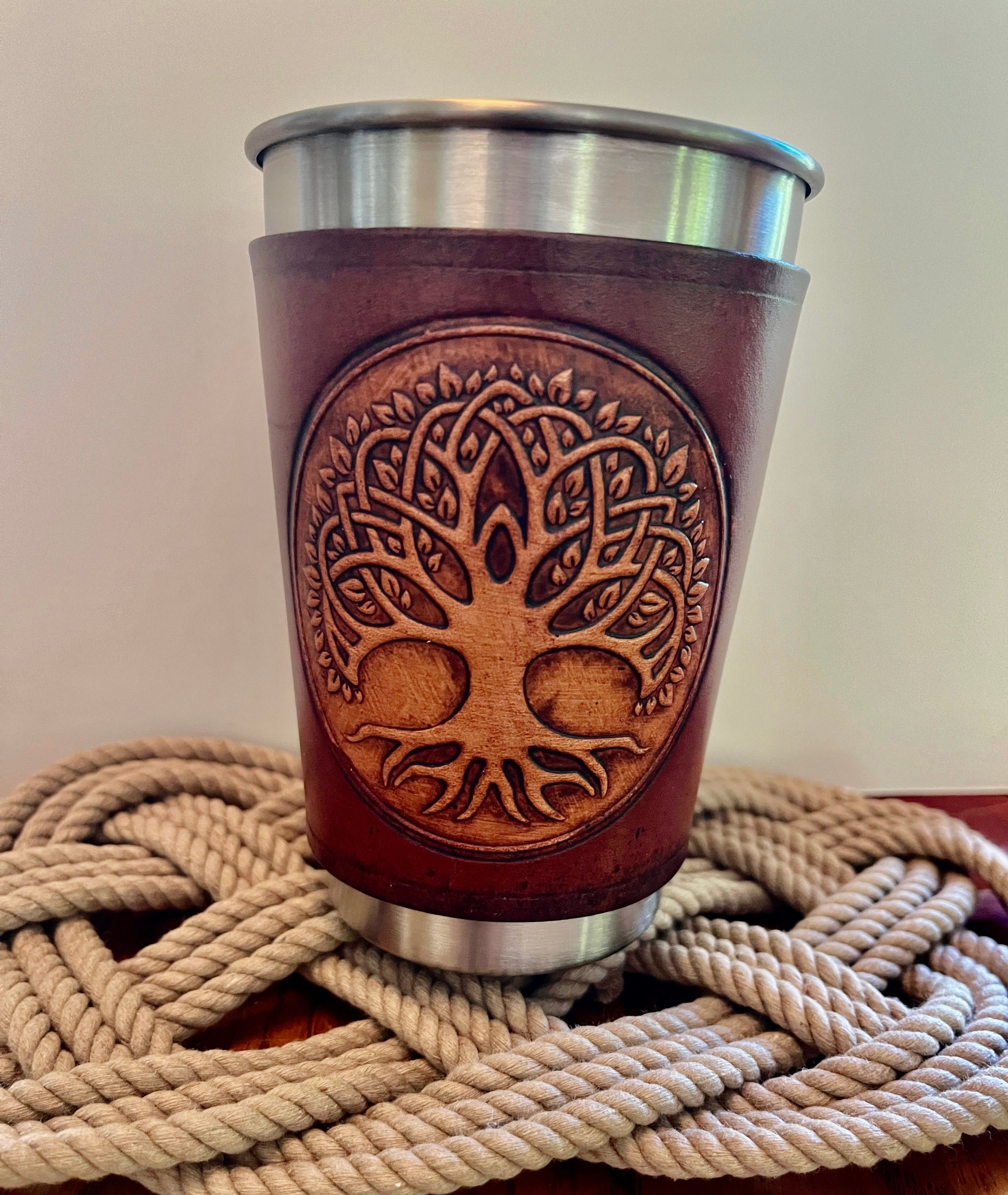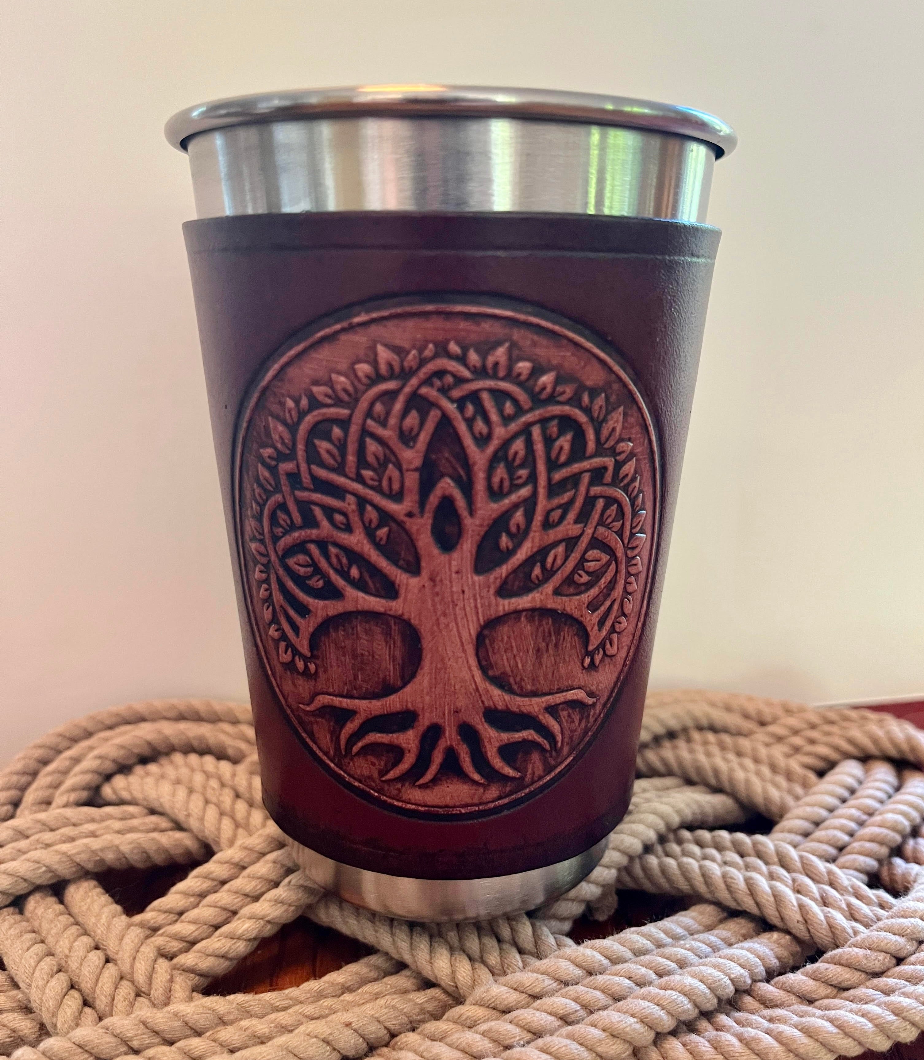 Tree of Life Leather Wrapped Pint