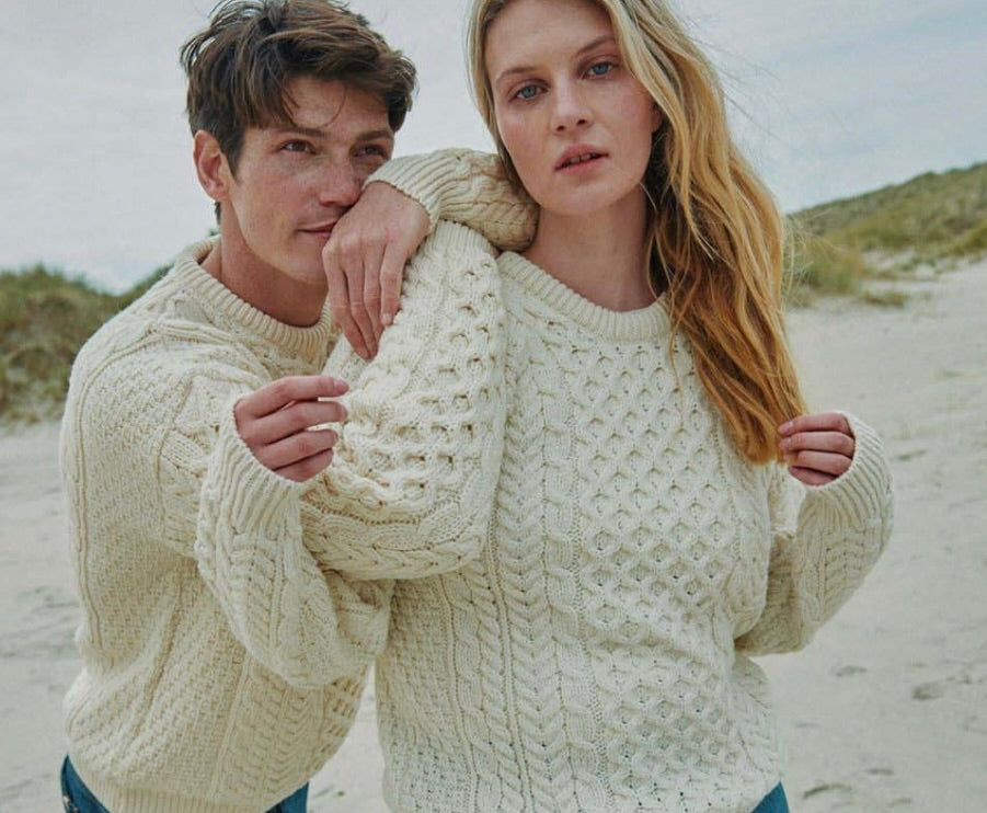 Ladies Celtic Knot Cowl Neck Sweater - Oatmeal