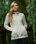 Aran Knit Zip Cardigan with Shamrock Trim