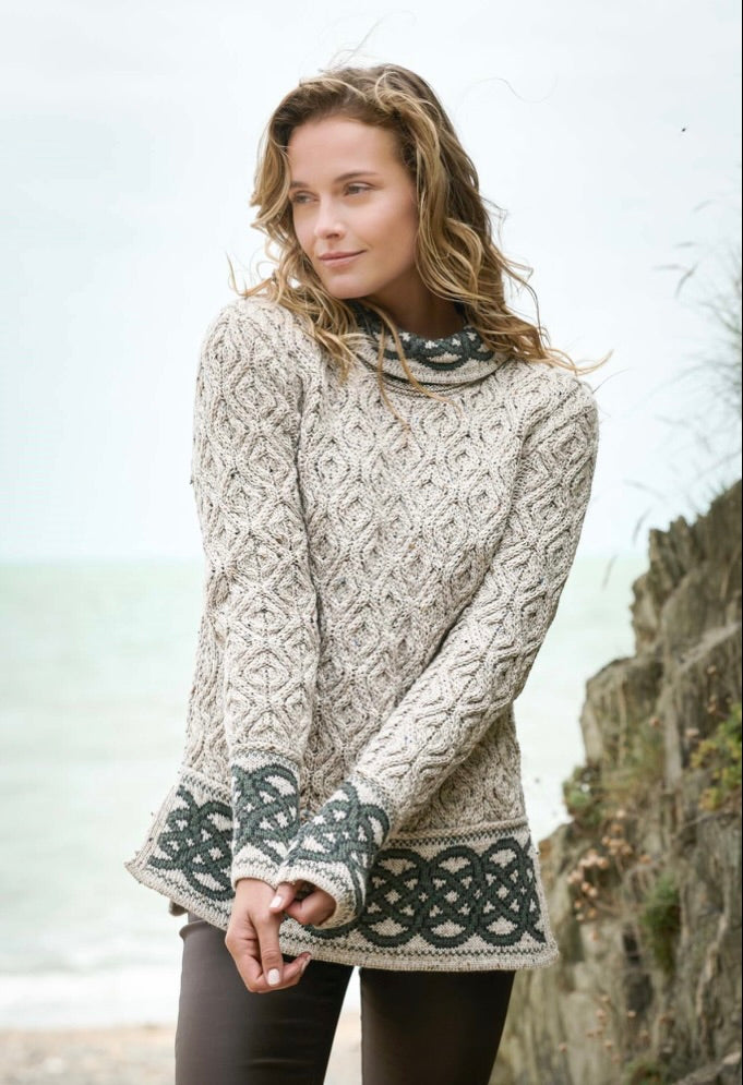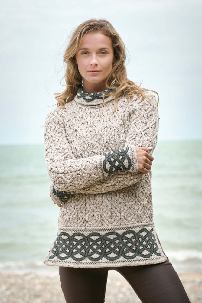 Ladies Celtic Knot Cowl Neck Sweater - Oatmeal