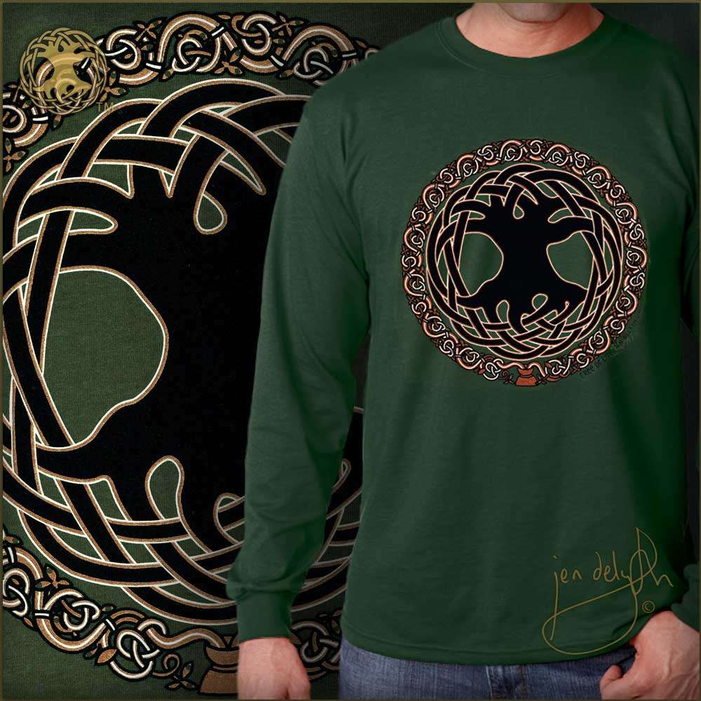 This Tee Shirt is a classic long sleeved 100% pre-shrunk cotton shirt for both men & women in a gorgeous forest green color. The Celtic Tree of Life represents the interconnection of all things. Roots and Branches create the circle of life. These are quality silkscreened with sharp clear precision – carefully cured to insure intricate detail while remaining machine washable and dryer safe.
