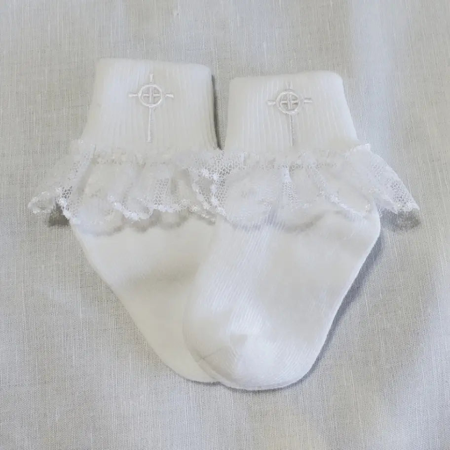 Baby Socks with Crystal Celtic Cross & Lace
