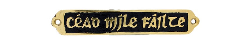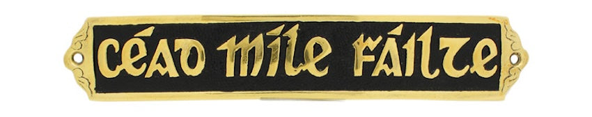 Crafted from enduring brass, this wall plaque features the traditional Irish greeting "Cead Mile Failte," meaning "One Hundred Thousand Welcomes." Its elegant design and rich finish make it a distinguished addition to any home or office, symbolizing warm hospitality and Celtic heritage with authenticity and timeless appeal. Made in Ireland