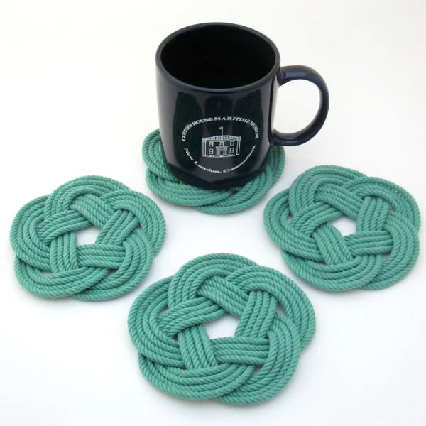 The coasters come as a set of four and measure 4 inches across. Handcrafted In the United States.