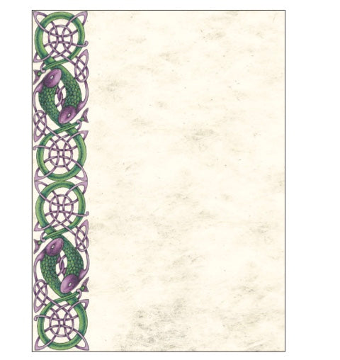 Crafted in Ireland, this Celtic Notepaper blends traditional design with practical elegance. Perfect for personal letters or professional correspondence, it reflects rich Irish heritage through its distinctive motifs. The high-quality paper ensures smooth writing, making each note memorable and meaningful. Ideal for those who appreciate authentic craftsmanship and cultural detail. Includes 8 sheets with matching envelopes. 6 1/4" x 8 1/4"