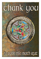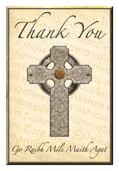 This pack of 8 Celtic Thank You Note Cards offers a refined way to share personalized messages with a touch of heritage. Each card features authentic Celtic designs, combining traditional symbolism with elegant craftsmanship. Ideal for special occasions or everyday correspondence, these high-quality cards provide a meaningful way to express your sentiments while honoring Celtic artistry.  8 cards (blank inside)and envelopes.  Designed and printed in Ireland.