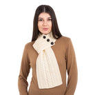 The scarf features three dark-colored wooden football buttons providing a multitude of styling options as well as an extra convenience. For the best results, hand wash this merino scarf in cold water and lay it flat to dry.  Made in Ireland.