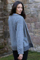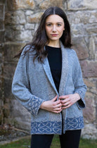 Knitted in wonderfully soft 100% merino wool, the Skye Jacket is a superb addition to your wardrobe. The yarn is spun in Donegal Ireland and carries a rich scatter of color fleck throughout each of the main color used.   The yarn is from Ireland and blend with colorways in Edinburgh, Scotland giving the Skye Jacket a truly Celtic heart. Easy to wear, this is a loose fitting style with reversible cuffs which allow you to fold back and shorten the sleeves. There are no buttons or fastening so simply wear it open or if you should like, you can pair with a brooch pin to the fasten the jacket.
