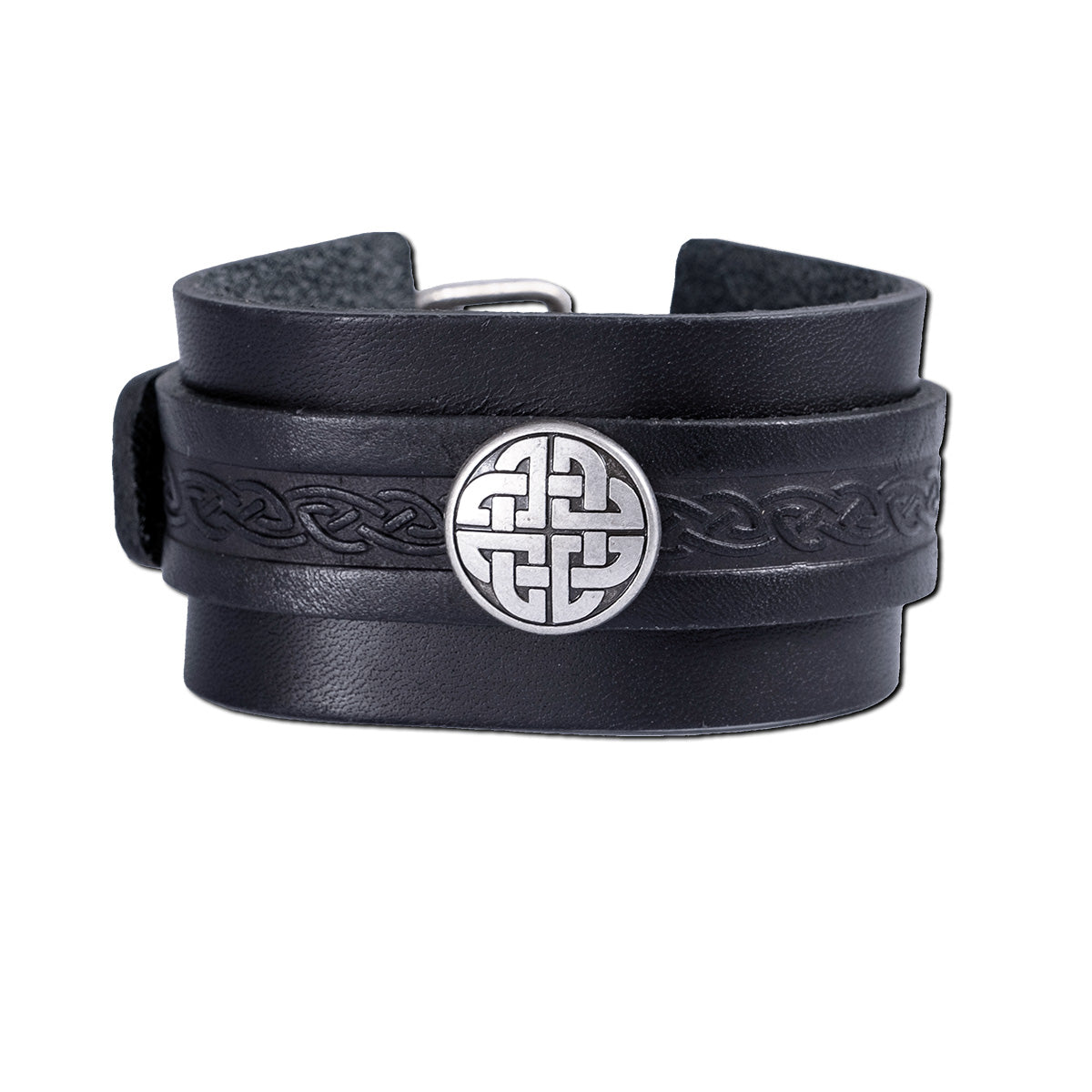 Discover our double-layer handmade leather cuff—a masterpiece of Irish craftsmanship that fuses tradition with modern durability. This statement accessory features a striking Celtic concho and detailed Celtic embossing on the strap, offering a bold nod to heritage. Handcrafted in Ireland and built to last, this cuff delivers robust style and enduring quality for those who appreciate timeless design with a rock n’roll edge. Adjustable to 9.5". Handcrafted in Cork, Ireland