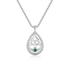 This is a pretty one, A teardrop shaped pendant with clear CZ stones accenting the Trinity Knot and a beautiful faceted green CZ as the heart of the Claddagh, even the bale has a Trinity knot! All crafted in Sterling Silver and comes on an adjustable 18"-20" Silver chain. This pendant measures about 1 1/2" Handcrafted in Ireland.