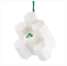2025 Annual Ornament by Belleek. The Giant’s Causeway, located in Antrim on the North Coast, is one of the most iconic and recognizable geographic landscapes and tourist destinations. Named a world heritage site by UNESCO in 1986, it is made up of around 40,000 interlocking basalt columns. These columns were created 50 – 60 million years ago from volcanic fissure eruptions. However, the Giant’s Causeway is deeply ingrained in our mythology and folklore. According to legend the columns are the remains of a causeway built by the giant Fionn mac Cumhaill (anglicised, Finn MacCool). Fionn had built the causeway to reach and face his rival, the Scottish giant, Benandonner. When Fionn saw how large Benandonner was in the distance he retreated home. Benandonner pursued Fionn and on his arrival at Fionn’s house his wife had disguised him as their baby and told Benandonner that Fionn was out. On seeing the ‘baby’ and his large stature Benandonner was alarmed at how large Fionn must be if his baby was already this large and he retreated back to Scotland, destroying the Causeway on his way back so that Fionn could not reach him. Some of the remnants of the causeway can also be found in Scotland at Fingal’s Cave. Made and Hand painted in Ireland. Measures - 2.8"H x 2.8"L