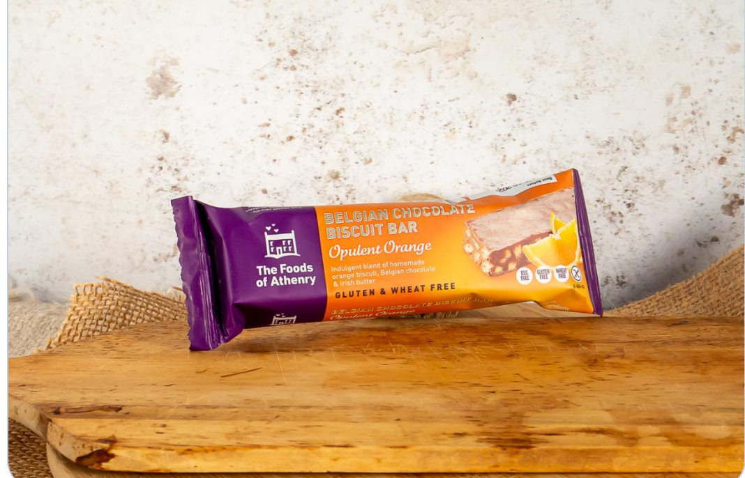 Ingredients: Gluten Free Biscuits (40%), Chocolate (Soya) (38%), Butter (Milk), 100% Vegetable non-hydrogenated Margarine, Golden Syrup, Orange rind oil. Biscuits made with gluten free flour (rice, potato, maize, buckwheat, tapioca),100% Vegetable Margarine, Sugar, Raising Agents – Mono calcium phosphate & sodium bicarbonate), Stabilizer: Xanthan Gum. Margarine contains Vegetable Oils (Rapeseed, Palm – from Sustainable Sources), Water, Salt, Emulsifier (E475), Colours (Annatto E160b, Curcumin E100), Natural Flavoring. Chocolate contains Sugar, Cocoa Mass, Cocoa Butter, Emulsifier-soy lecithin, Natural Vanilla.