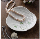 Perfect for entertaining, this set of two shamrock canape plates. Shaped in a shamrock and embossed with the heritage basketweave pattern, there are 3 painted shamrocks on each plate. Alternatively, you can use this set for jewellery, trinkets or as soap dish. Dishwasher and Microwave safe. Measures 0.6"H x 5.7"W Made and Hand painted in Ireland.